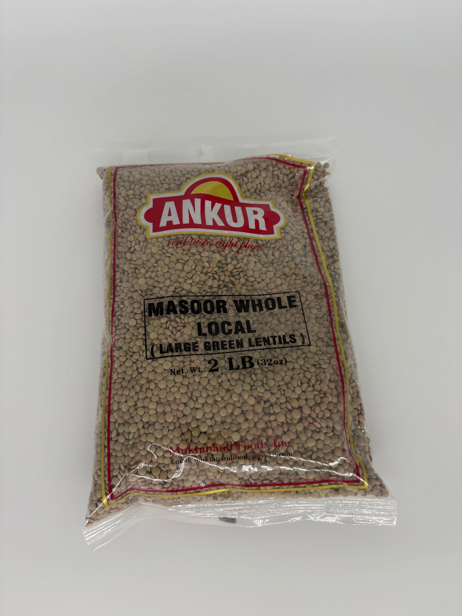 Ankur Masoor Whole Local Large Green Lentils are premium quality whole lentils perfect for traditional dal dishes. These large green lentils cook to a creamy texture while maintaining their shape. Rich in protein and fiber, ideal for halal vegetarian cooking. A nutritious staple for Indian and Pakistani cuisines.