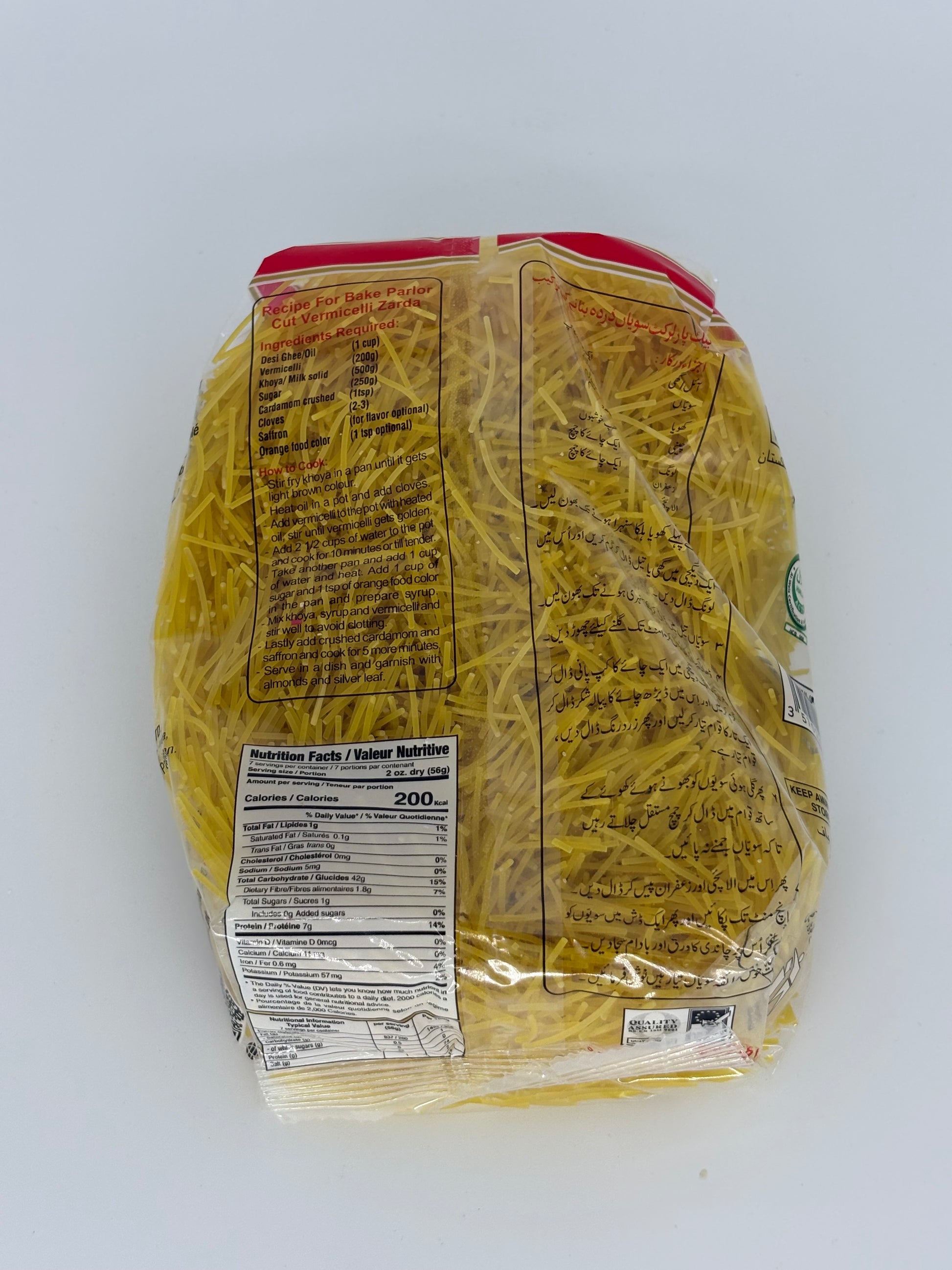 Bake Parlor Cut Vermicelli Plain are thin, cut noodles perfect for traditional Pakistani and Indian desserts. These vermicelli cook quickly and are ideal for making seviyan (sweet vermicelli), kheer, or savory dishes. A halal pantry staple for festive cooking and everyday meals.